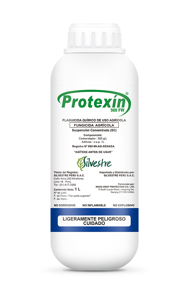 Es un fungicida sistémico. Benzimidazol tiene acción protectiva y curativa, de formulación y suspensión concentrada, con alta potencia micotóxica para el control de diversos hongos fitopatógenos. Estos afectan a los cultivos. Protexin es absorbido por las raíces y tejido verde, translocándose de forma acropétala hacia toda la planta.